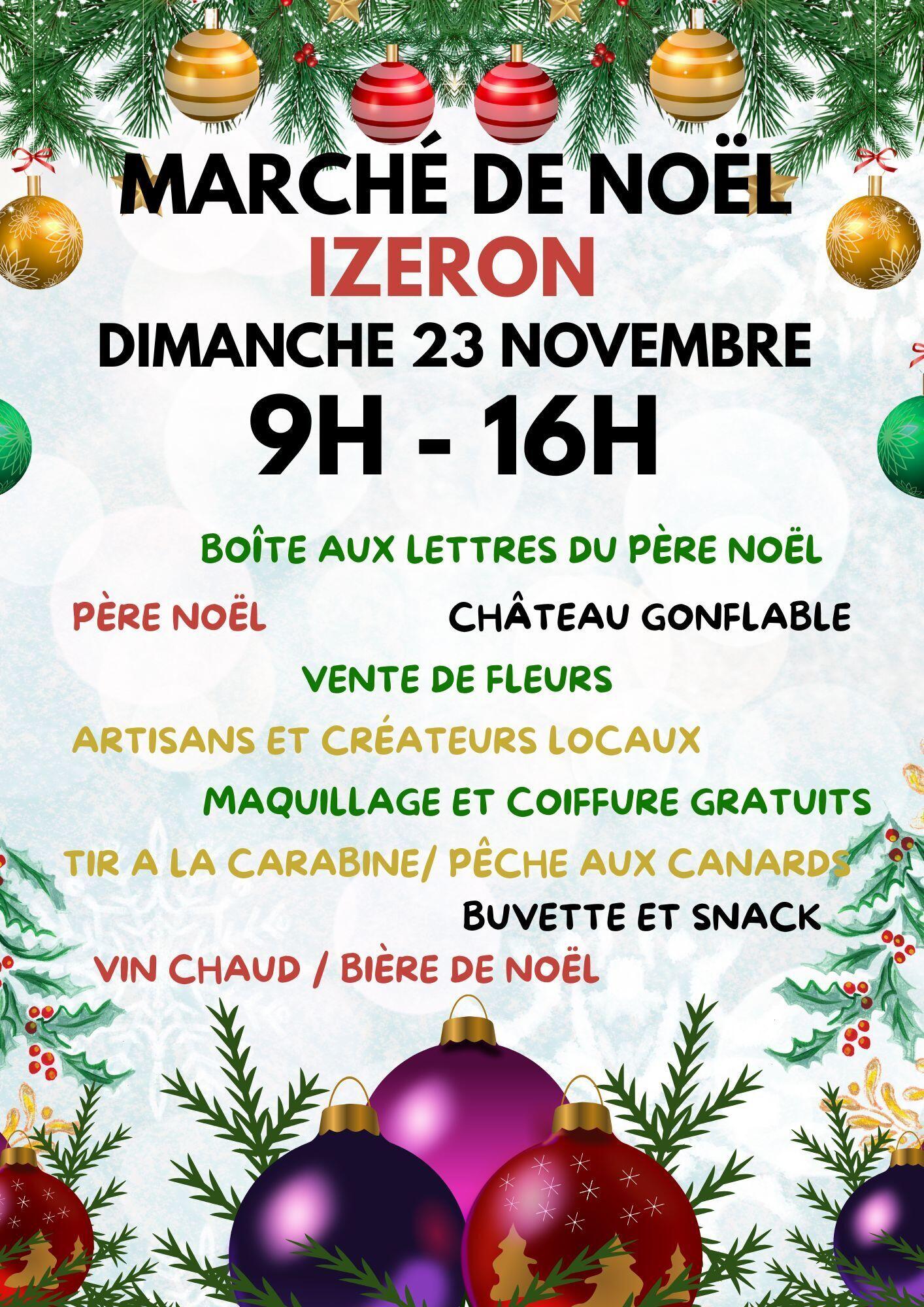 Au programme : artisans et créateurs locaux, boîte aux lettres du Père Noël et présence du Père Noël, vente de fleurs, maquillage et coiffure gratuit, tir à la carabine/pêche aux canards, buvette et snack, vin chaud, bière de Noël